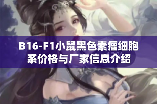 在医学和生物研究领域,细胞系的应用非常广泛,尤其是在肿瘤研究方面。B16-F1小鼠黑色素瘤细胞系就是其中一种重要的细胞模型,它源自黑色素瘤患者的实验小鼠,具有一定的原代细胞特性,广泛应用于癌症生物学、药物筛选以及免疫治疗的研究中。